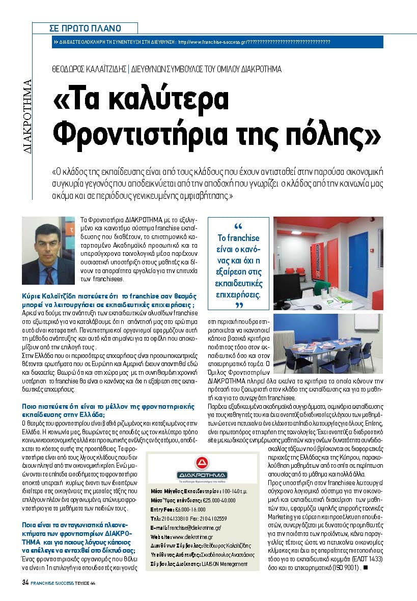 Τα φροντιστήρια ΔΙΑΚΡΟΤΗΜΑ αποτελούν την πιο κερδοφόρα πρόταση franchise εκπαίδευσης σήμερα!